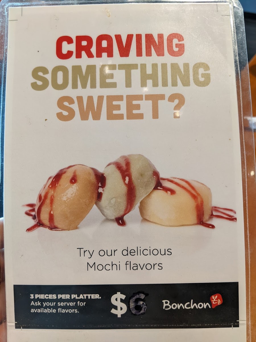 Eight fried dumplings, brushed with Bonchon signature sauce. Choice of pork or vegetable.