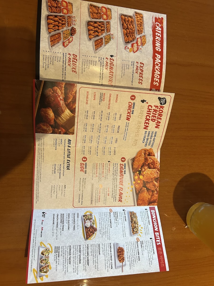All your favs! 2 drums, 4 wings, Bulgogi Fries, Pork Potstickers, Korean Street Corn and Coleslaw. Your choice of Bonchon signature sauce and a dipping sauce. Feeds 2-3
